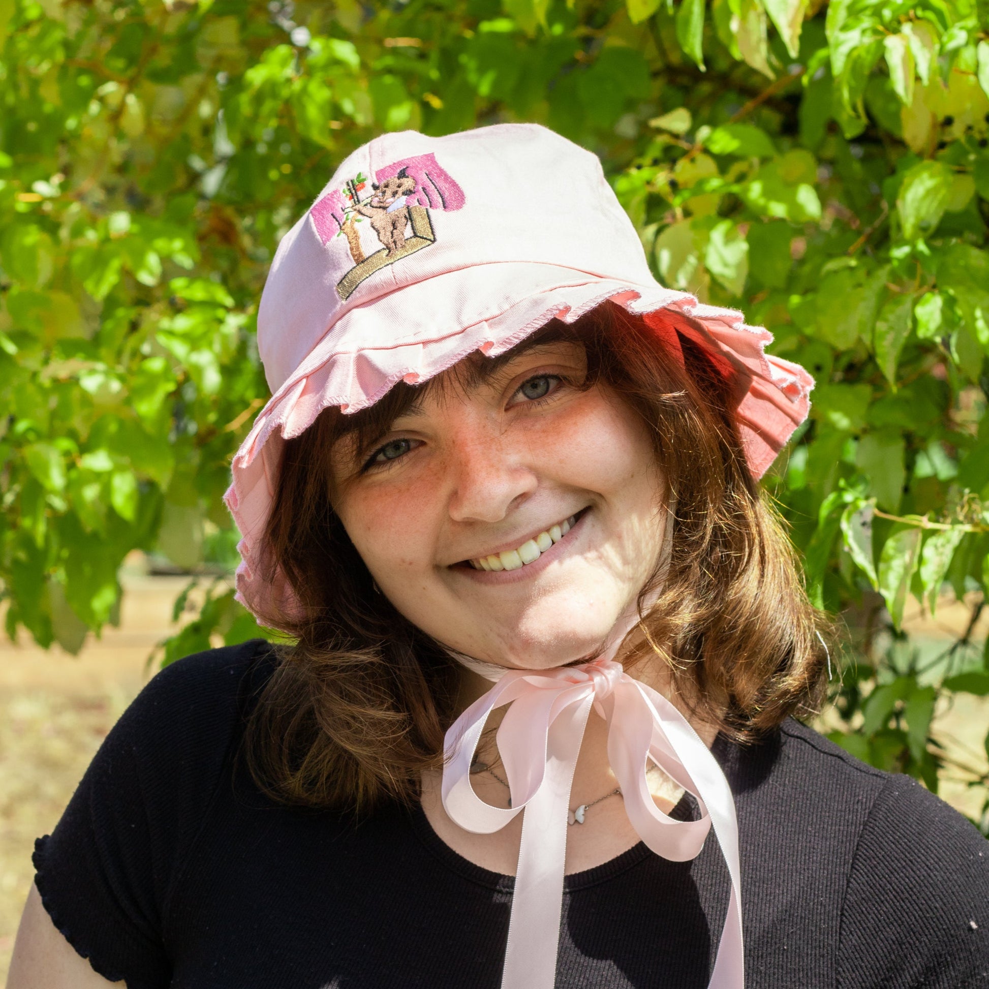 The photo looks really bright pink and the product is a deep and pretty pink but not as vibrant as in the photo. That said, it's still a beautiful and cute beret that sits comfortably on my head and feels secure without needing additional reinforcement! Fabric is soft and doesn't itch, and embroidery is sleek and polished and really shines.